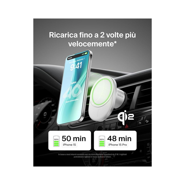 BELKIN Caricatore Auto Magsafe Qi2 (con adattatore auto)